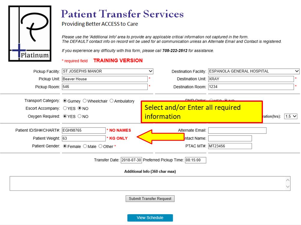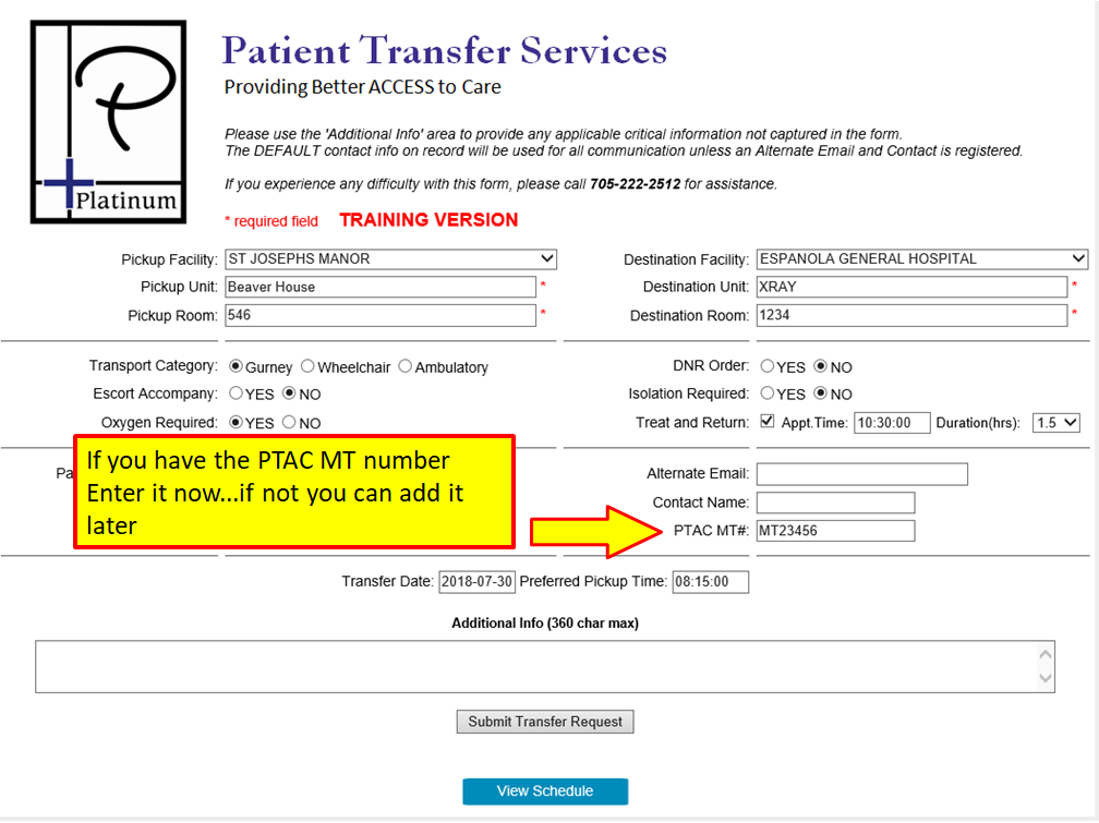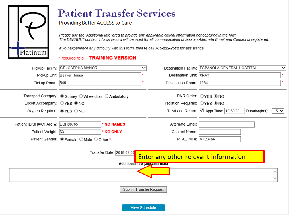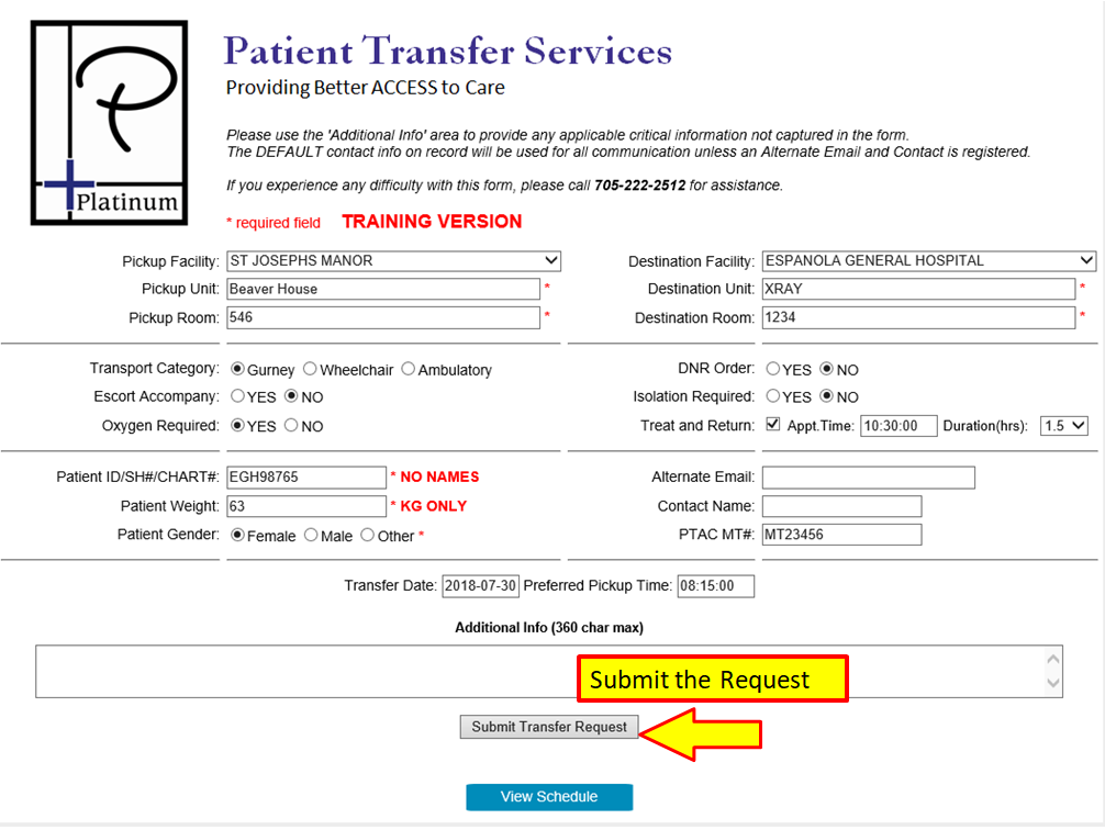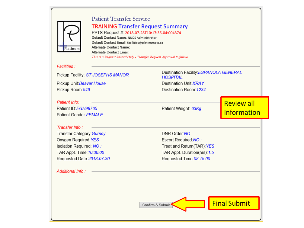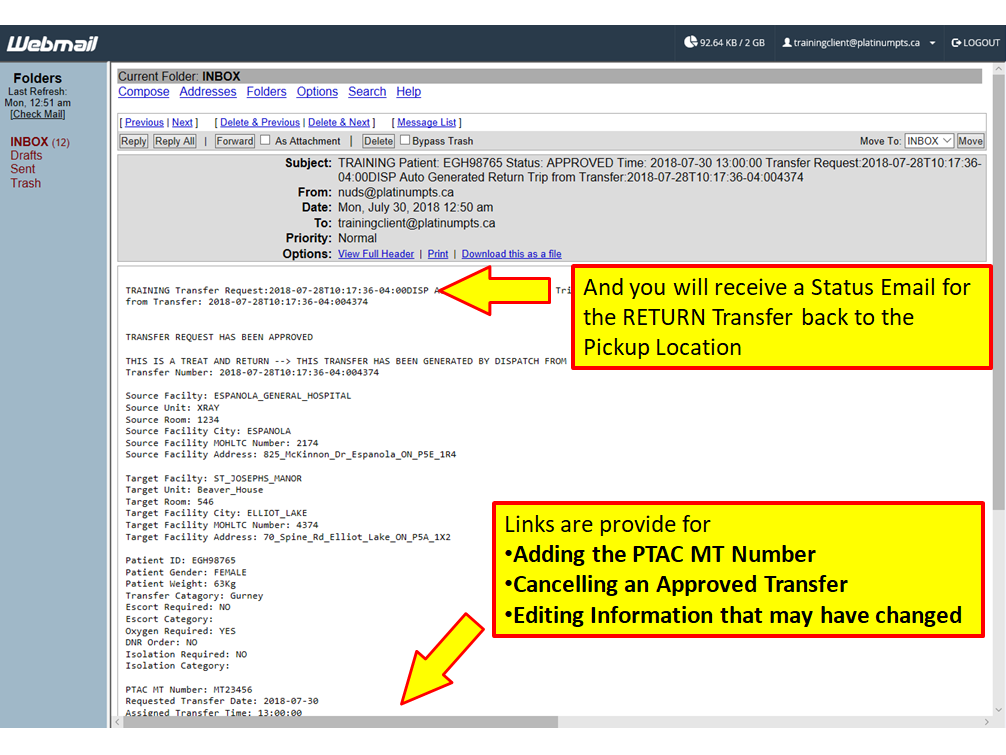 Requesting a Treat and Return or a Two Way Transfer